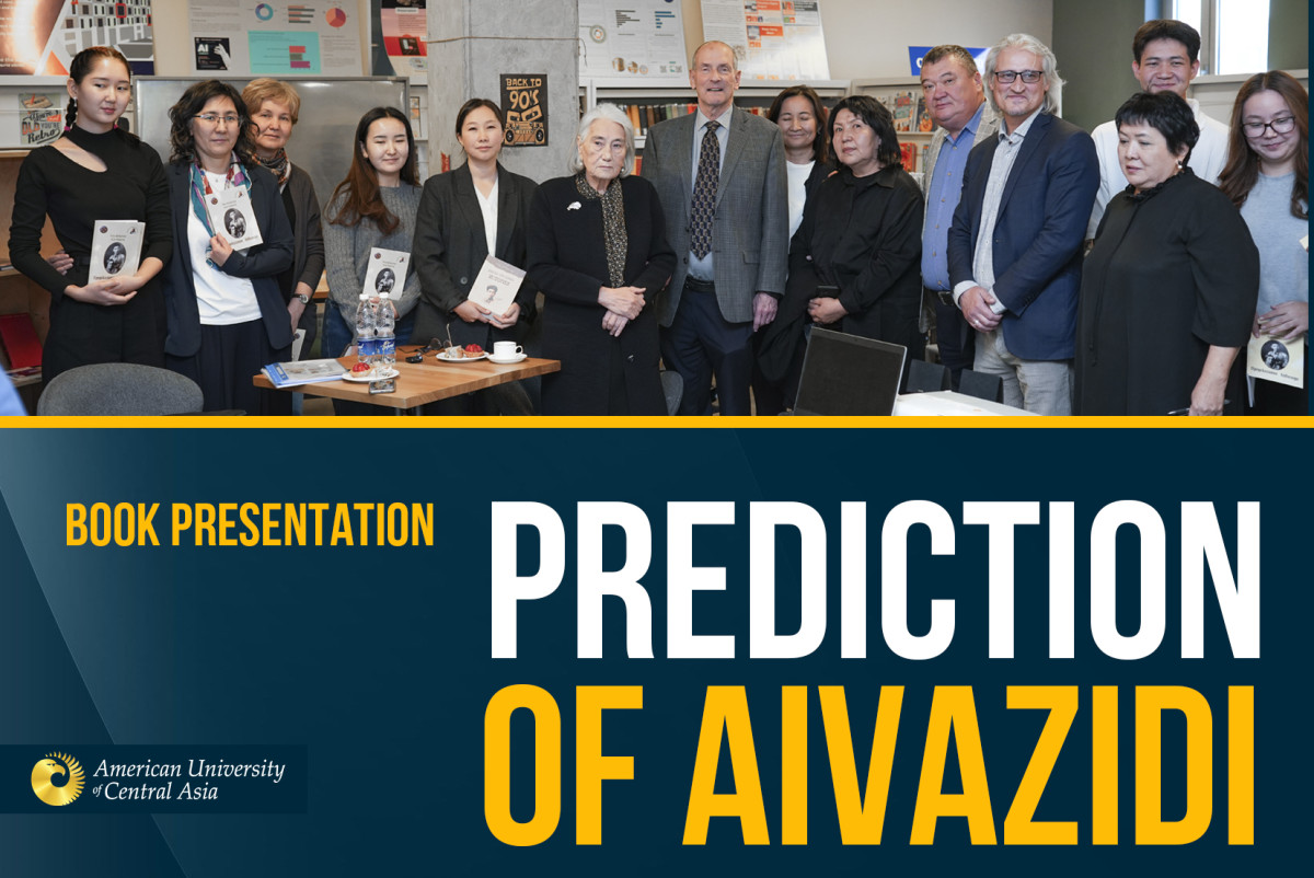 On October 9, the AUCA Library hosted a presentation of the book Prediction of Aivazidi. The event brought together students, faculty, and guests to meet the authors Roza Aitmatova, a public figure, writer, and sister of the renowned Kyrgyz novelist Chingiz Aitmatov, and Asan Akhmatov, grandson of Torekul Aitmatov.