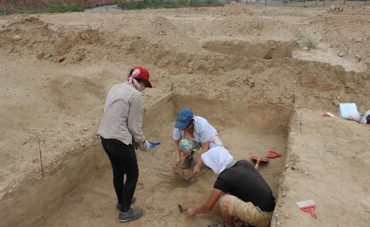 Биз күн сайын талаада иштедик. Биз изилдеп жаткан эстеликтин аты Айгыржал-2 болчу. Бул эстелик Нарын шаарынын батыш тарабында, Ак-Кыя аттуу жерде, Нарын дарыясынын сол жээгинде орун алган. Чыгыштан батышка созулган, узундугу болжол менен 280, кеңдиги 79 метрди түзгөн, жарым-жартылай эолдук (шамал жеп салган) жана аллювийдик (кум, шагылдын шилендилери) калдык болуп саналат.