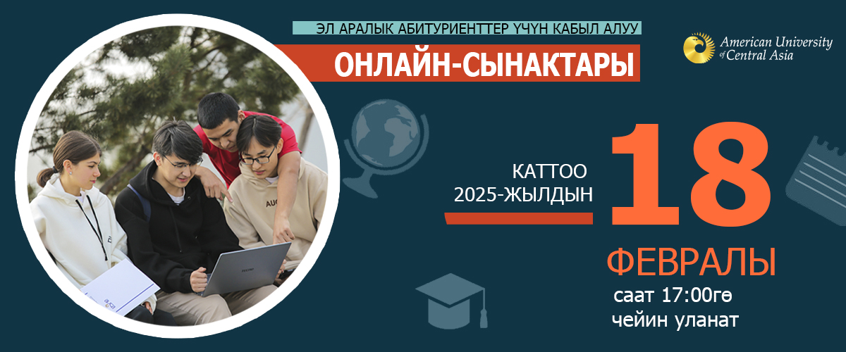 Борбордук Азиянын мыкты университеттеринин биринде англис тилинде сапаттуу билим алгыңыз келеби? Анда Борбордук Азиядагы Америка университетинин студенти болуу мүмкүнчүлүгүн колдон чыгарбаңыз!